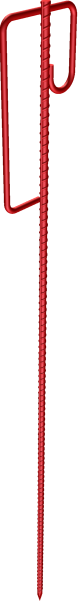 Absperrleinenhalter, rot lackiert, Ø 12mm Rundstahl, mit angeschmiedeter Spitze zum praktikablen Einschlagen in den Boden, Länge 1,25m, mit angeschweißtem UVV- Bügel zum Einhängen von Kabeln, Schnüren etc.