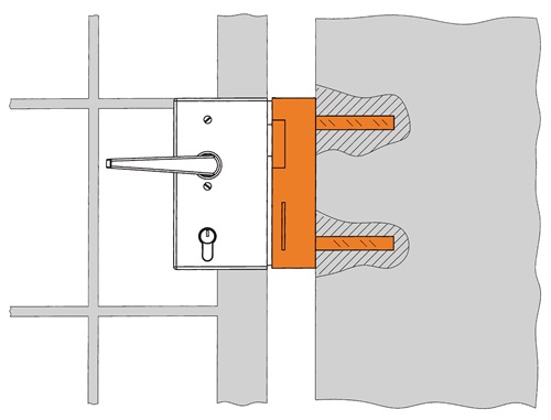 verzinkt · für Bohrbefestigung · für elektrischen Türöffner vorgerichtet · links und rechts verwendbar · inkl. verzinktem Schließblech · auch für Kastenbreite 30 mm auf Anfrage lieferbar