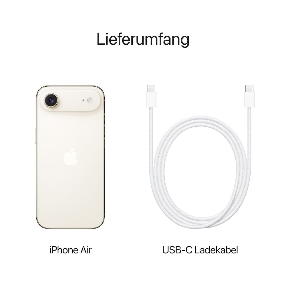 Lieferumfang: iPhone mit IOS 26 - USB-C Ladekabel (1 m) - Dokumentation