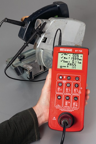 geeignet für Elektrotechnik, Industrie, Instandsetzung, Service, Kommunen (einfache Handhabung, für batterie- und netzbetriebene Prüfungen)Anwendungsbereiche: Prüfung von Geräten mit netzspannungsabhängigen Schaltelementen/Netzteilen/Relais, wie elektronisch gesteuerte Geräte/Werkzeuge · Geräte der Informations- und Kommunikationstechnik sowie Geräten, die nur mit Netzspannung vollständig geprüft werden können, gemäß VDE 0701-0702, DGUV Vorschrift 3, ÖVE/ ÖNORM E 8701, NEN 3140· Messwertspeicher für 999 Prüfobjekte, auslesbar über Micro-USB-Schnittstelle· Downloadsoftware zur Prüfprotokollerstellung in MS Excel· Direkte Prüfprotokollerstellung über serielle Schnittstelle und optionalen Drucker BENNING PT 2· Integrierte Echtzeituhr zur Speicherung der Messwerte mit Prüfdatum· Schnell (Prüfung innerhalb weniger Sekunden), komplett (Gerätetester und FI/RCD-Tester in einem Prüfgerät), einmalig (Prüfung 1- und 3-phasiger Geräte unter Funktionsbedingungen)· Automatischer Prüfablauf mit gut-/ schlecht Anzeige für Geräte der Klasse I, II (III) und Leitungstest · Aktive Prüfung 3-phasiger Geräte unter Funktionsbedingung (optionale Messadapter)· Grenzwerte gemäß VDE-Norm voreingestellt· Batteriekapazität für 2500 Prüflinge· Gewicht: 950 gMessungen:Schutzleiterwiderstand (200 mA Prüfstrom mit Polaritätsumkehr), Isolationswiderstand (250 V/ 500 V Prüfpannung), Prüfung 30 mA FI/RCD/PRCD-Schutzschalter (Auslösezeit bei 1 x und 5 x Nennstrom), Spannung an externer SchutzkontaktsteckdoseNetzbetrieb: Schutzleiter-/Berührungsstrom über Differenzstrom-/ direktes Messverfahren mit automatischer NetzumpolungBatteriebetrieb:Schutzleiter-/ Berührungsstrom über Ersatzableitstromverfahren