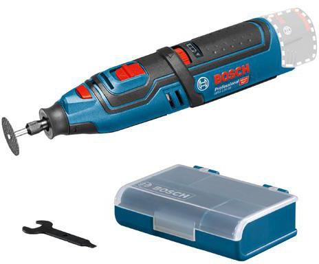 Akku-Rotationswerkzeug GRO 12V-35 · Leistungsstark und vielseitig für professionelle Anwendungen · Leistungsstarker Motor mit hoher Drehzahl (bis zu 35.000 min-1) für schnellen Arbeitsfortschritt · Vielfältige professionelle Anwendungsmöglichkeiten wie Schneiden · Schleifen · Fräsen · Polieren und Bohren · besonders an schwer zugänglichen Stellen · Komfortables Arbeiten durch kompakte Bauform · ergonomisches Design und integriertem LED-Licht · Zubehör Box. 5 x Trennscheibe · 32 mm. Aufspanndorn (2 610 927 731). Gehäuseaufsatz (1 619 P11 344). Schlüssel (2 610 930 692). Spannzange (1 619 P11 363). 1/2 L-BOXX-Einlage für Werkzeug (1 600 A00 2WY). Karton Weitere technische Eigenschaften: · Gewicht: 0,62kg · prüfpflichtig: ja · Verpackungsabmessungen (Breite x Länge x Höhe): 214 x 335 x 80mm