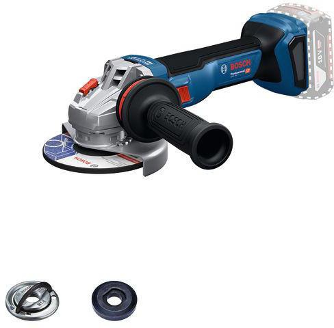 Akku-Winkelschleifer GWS 18V-11 · Dieser Winkelschleifer wurde für eine Vielzahl von leichten bis mittelschweren Trenn- und Schleifaufgaben entwickelt und ist ein vielseitiger Allrounder · der für Wartungs- und Reparaturarbeiten sowie für Installationsarbeiten auf der Baustelle geeignet ist. Mit der Leistung eines 1100-Watt-Kabelgeräts und optimierter Überlastkapazität erweist er sich in Industriejobs wie dem Entgraten · dem Entfernen von Rost oder der Wartung und Reparatur von Leitungen als ausgesprochen langlebig. Während der Arbeit sorgen der Anti-Vibrationshandgriff und ein schlankerer · längerer Griff für mehr Komfort und weniger Ermüdung · während zahlreiche Sicherheitsmerkmale das Verletzungsrisiko senken. Dieser Winkelschleifer ist eine ausgezeichnete Wahl für Wartung und Reparatur sowie für Installationsarbeiten auf der Baustelle und ermöglicht eine Vielzahl von Anwendungen wie leichte bis mittelschwere Trenn- und Schleifarbeiten wie das Entgraten oder die Wartung und Reparatur von Leitungen. Schutzhaube (1 605 510 365). Schnellspannmutter (2 608 000 684). Aufnahmeflansch (1 605 703 099). Zusatzhandgriff Vibration Control (2 608 900 000) Weitere technische Eigenschaften: · Schleifspindel: M14 · Bohrung, D.: 22,2mm · Gewicht exkl. Akku: 1,7kg · Scheiben-D.: 125mm