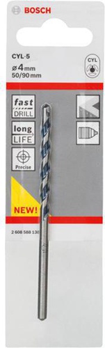 Eigenschaften "Bosch Betonbohrer CYL-5 Blue Granite D.4mm Arbeits-L.50mm L.90mm "
