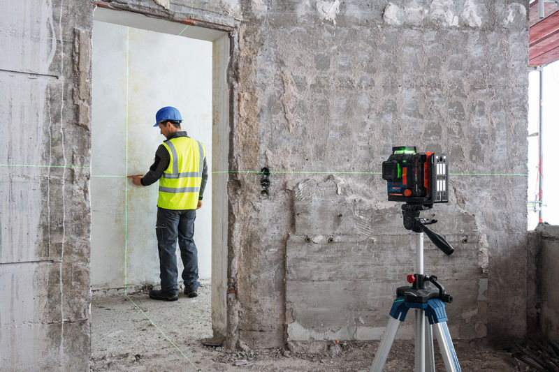 Linienlaser GLL 3-80 C · Der Linienlaser GLL 3-80 C Professional wird einfach angeschlossen und sorgt über die Projektion von 3 x 360°-Linien für exzellente Sichtbarkeit. Dank innovativer CAL Guard-Überwachung und Bluetooth®-Verbindung zur Smartphone-App sind der ferngesteuerte Einsatz · die kontaktlose Justierung sowie hohe Präzision möglich. Leistungsstarke Dioden garantieren starke Sichtbarkeit · während dank 3 x 360°-Linien für die gleichzeitige Durchführung von horizontalen und vertikalen Nivellierarbeiten und somit für hohe Arbeitseffizienz gesorgt wird. Dieser Linienlaser wurde für den Bau von Böden · die Montage von Fenstern · das Anbringen von Regalen · das Verlegen von Abflussrohren · den Rohbau für Trockenbauwände und das Verlegen von Fliesen entwickelt. Dank Dual Power Source-Technologie des GLL 3-80 C Professional ist ein Betrieb sowohl mit 12-V-Li-Ion-Akku als auch mit Standard-Alkalinebatterien möglich · ein Plus an Flexibilität. Das Gerät ist in der Lage · sich auf nicht planaren Oberflächen in weniger als 4 Sekunden mit einer exzellenten Genauigkeit von ± 0,2 mm/m*/** um bis zu +/- 4° selbst zu nivellieren und verfügt bei Verwendung des optionalen Empfängers LR 6 oder LR 7 Professional über eine Reichweite von bis zu 120 m. Dieser Linienlaser ist kompakt · einfach zu bedienen und extrem robust. AA1 Alkaline Akku-Adapter (1 608 M00 C1B). Laserzieltafel. Tasche. 4 x 1,5 V-LR6-Batterie (AA) Weitere technische Eigenschaften: · Laserklasse: 2 · Stromversorgung: 12 V-Li-Ionen-Akku, 4 x 1,5-V-LR6 (AA) · Schutzart: IP54 (außer für Akku und Akkuadapter) · Akkuspannung: 12V · Arbeitsbereich mit Empfänger: 120m · Betriebstemperatur: -10 - 40Grad Celsius · Farbe Laserlinie: rot · Kompatible Laser-Empfänger: LR 6 + 7 · Lagertemperatur: -20 - 70Grad Celsius · Nivellierzeit: 4s · Projektion: 3 x 360° Linie · Stativ-Gewinde: 1/4, 5/8Zoll · Betriebsdauer, max.: 8 Std. (Li Ion) und 6 Std. (4 x AA) in 3-Linien-Modus