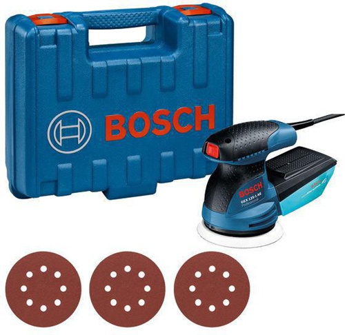 Exzenterschleifer GEX 125-1 AE · Der GEX 125-1 AE Professional ist Boschs kabelgebundener Einsteiger-Exzenterschleifer in der 125-mm-Kategorie. Er wurde extra für kleine Flächen und kleinere Reparaturarbeiten konstruiert. Sein kompaktes und ergonomisches Design mit variablen Griffpositionen bietet hervorragenden Komfort auch bei Arbeiten über Kopf. Die Drehzahlvorwahl ermöglicht eine Verwendung für verschiedenste Materialien. Die Staubbox umfasst ein integriertes Bosch Microfilter-System für eine effiziente Staubabsaugung und nahezu staubfreies Arbeiten. Dieser Exzenterschleifer eignet sich zum Schleifen und Zwischenschleifen · Lackentfernen und Feinschleifen auf verschiedensten Materialien. Er ist einsetzbar auf Holz · Furnier · Lack · Füllmasse sowie Mineral- und Acryloberflächen. Das Gerät ist mit dem Bosch Click & Clean System kompatibel. Der GEX 125-1 AE Professional ist außerdem mit einem 125-mm-Schleifteller mit Klettsystem zur Schleifpapierbefestigung ausgestattet. Handwerkerkoffer. Microfilter Box. 3 x Schleifblatt C470 · Best for Wood + Paint · 80 (separat erhältlich als 5er-Pack: 2 608 605 069) Weitere technische Eigenschaften: · Netzspannung: 230V · Leerlaufdrehzahl: 7500 - 12000min-¹ · Exzentrizität: 1,25mm · Schleifmittelbefestigung: Klettverschluss · Werkzeugabmessungen (Breite): 122mm · Werkzeugabmessungen (Höhe): 150mm · Werkzeugabmessungen (Länge): 227mm