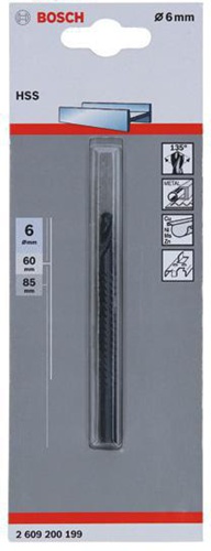 Eigenschaften "Bosch Fräsbohrer HSS DxL 6x85mm Schaft-D.6mm empf.Drehzahl 1000-2000 1/min "