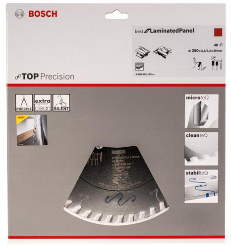 Eigenschaften "Bosch Kreissägeblatt Best for Laminated Panel Abrasive D.250mm Bohrung 30mm 48Zähne DH"