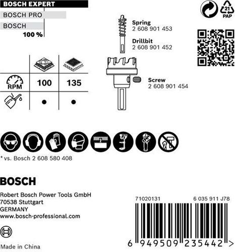 Lange Lebensdauer in Edelstahl! Geschliffene und geschärfte feine Carbide-Zähne für Festigkeit · Langlebigkeit und Präzision Das Schneiden von Löchern in Stahlblech ist nicht mit anderen Lochsägen-Anwendungen vergleichbar. Im industriellen Bereich und im Fahrzeugbau ist Präzision gefragt. Gleichzeitig ist der Werkstoff sehr widerstandsfähig und bringt herkömmliche Bi-Metall-Lochsägen schnell an ihre Grenzen. Die EXPERT Sheet Metal-Lochsäge löst besteht aus kompakter · hochwertiger Technik und kennt diese Probleme nicht. Diese Lochsäge vereint die besten Eigenschaften in einer kompakten Form: Sie ist langlebig · genau und für hochwertige Blecharbeiten optimiert. Überragende Lebensdauer dank Bosch Carbide Technology Weitere technische Eigenschaften: · Arbeitslänge: 5mm