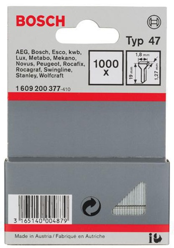 Eigenschaften "Bosch Nagel Typ 47 LxB 19x1,8mm Dicke 1,27mm 1000er Pack "