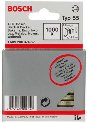 Bosch Schmalrückenklammer Typ 55 B.6mm Dicke 1,08mm L.23mm geharzt 1000er Pack