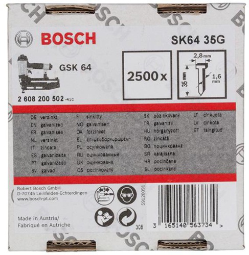 Bosch Senkkopfstift SK64 35G 2500-tlg.LxBxD.35x2,8x1,45mm verzinkt Drahtmaß 1,6mm