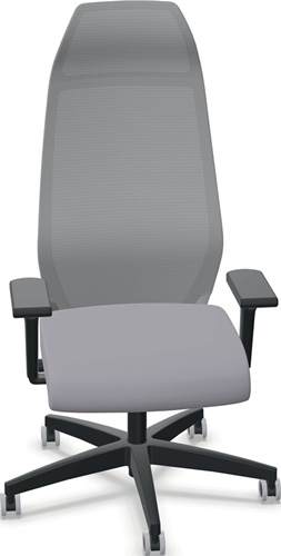 mit Synchrontechnik (mit Armlehnen) · für überwiegend sitzende Tätigkeit · stabiles Kunststoff-Fußkreuz, schwarz · mit seitlicher Feineinstellung des Rückenlehnengegendrucks mit wenigen Umdrehungen · mit Netzrückenlehne und Nackenstütze · Sitztiefenverstellung 70 mm per Schiebesitz · Armlehnen höhen-/breiten- und tiefenverstellbaren, mit PU-Auflage · Sitzbezug aus 100 % Polyester · Sitzfläche B 500 x T 480-550 mm · Lehnenhöhe 840 mm · Universalrollen für weiche und harte Böden Lieferung erfolgt montiert