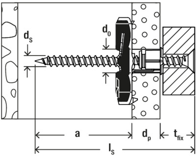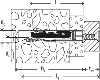 - In Vollbaustoffen, wie z. B. Beton oder Holz funktioniert er wie ein Spreizdübel. Achtung, nicht mit metrischen Schrauben!