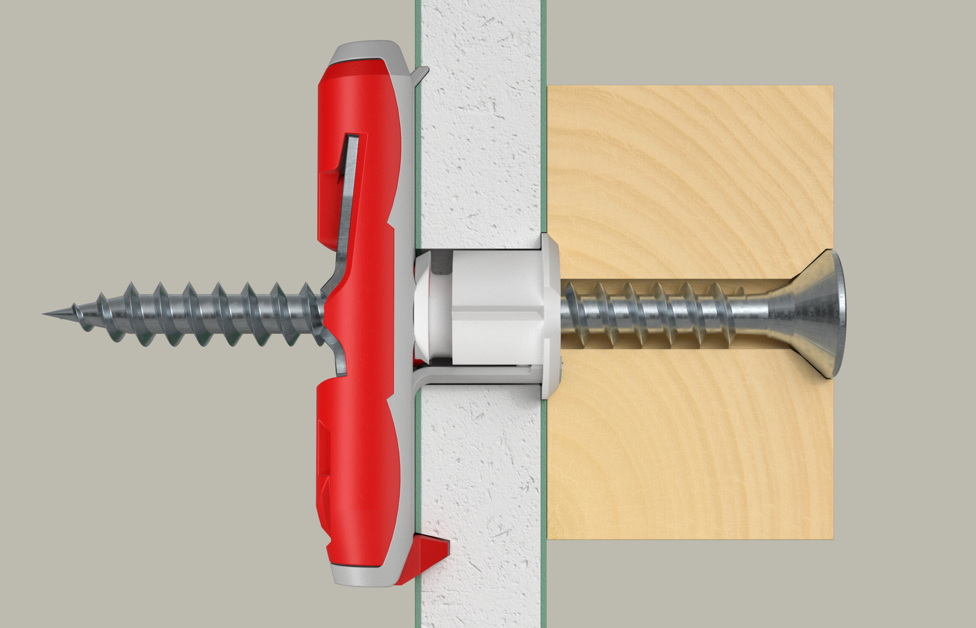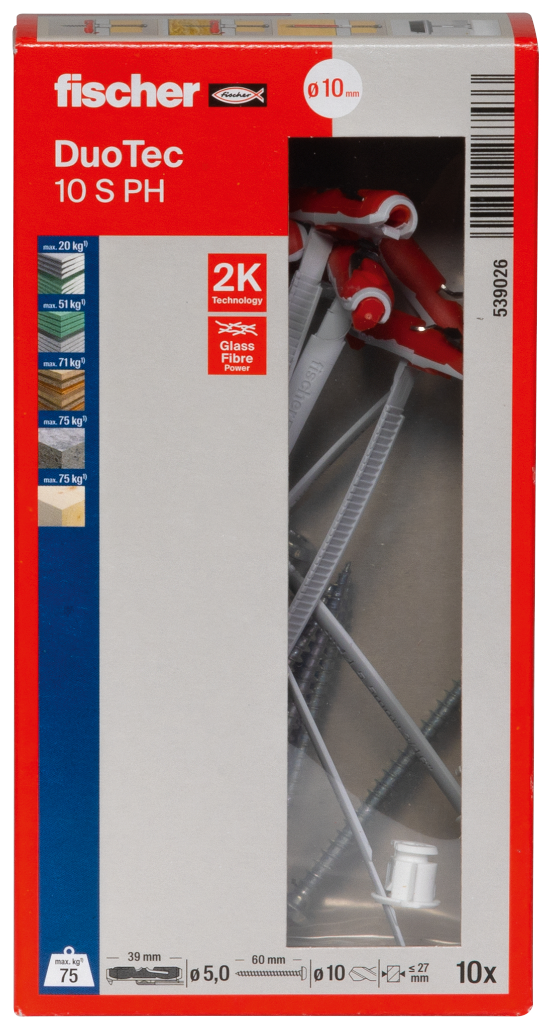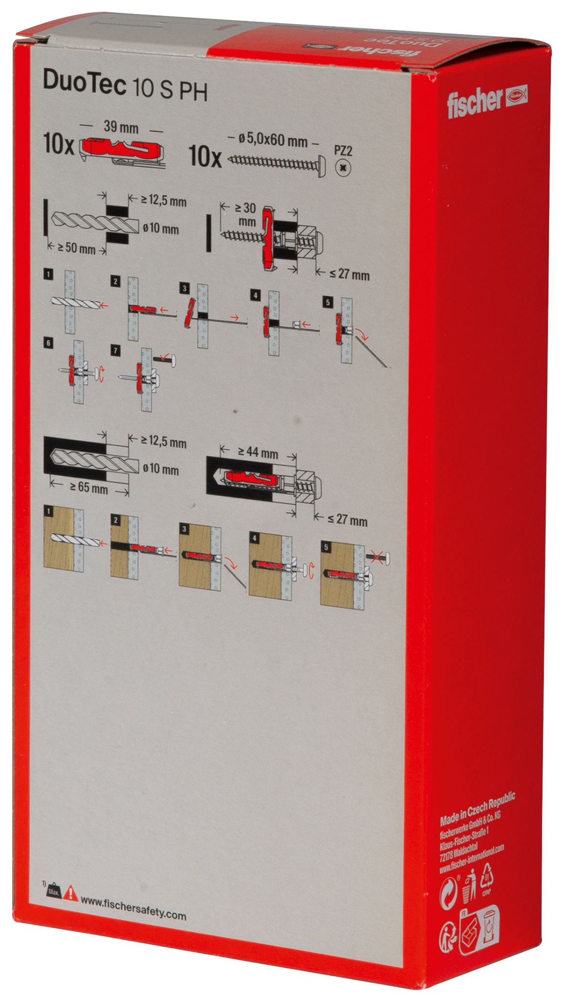 - Glasfaserverstärkte Kunststoffe und die Metall-Skelett-Einlage (fischer DuoTec 12) sorgen für die Aufnahme hoher Zug- und Querlasten in allen Plattenbaustoffen.