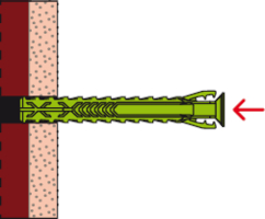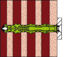 - Die 4-fach-Spreizung sorgt für optimale Krafteinleitung in den Baustoff und garantiert hohe Haltewerte in Voll- und Lochbaustoffen.