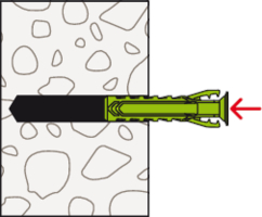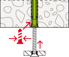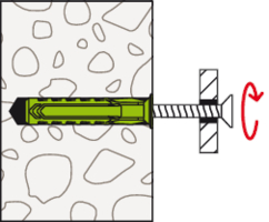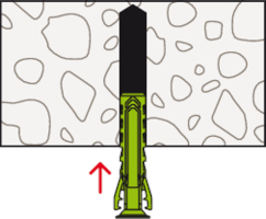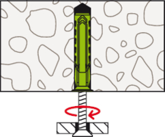 - Beim Festdrehen der Schraube spreizt der SX Plus Green in vier Richtungen auf und verankert sich somit sicher im Baustoff.