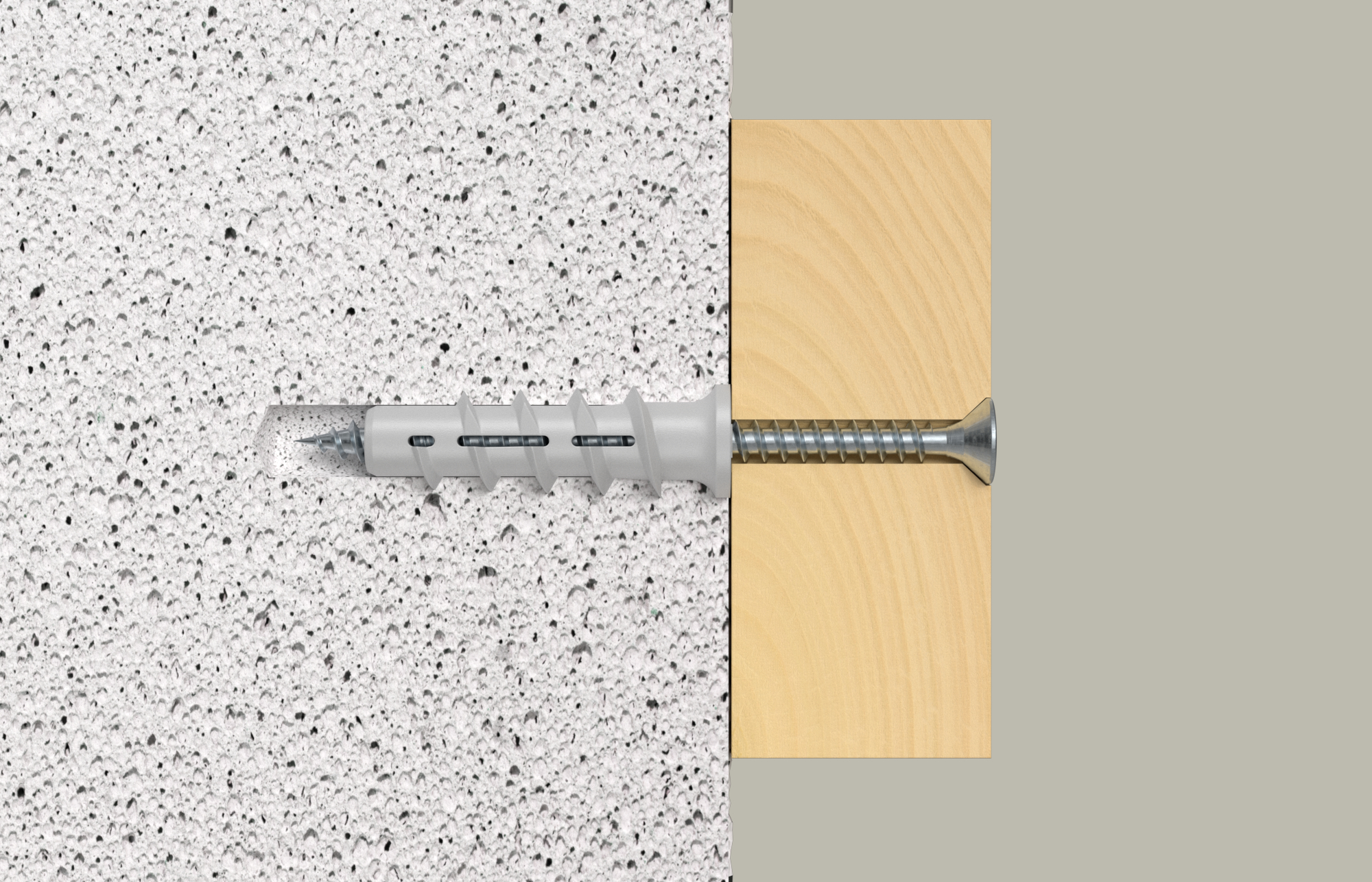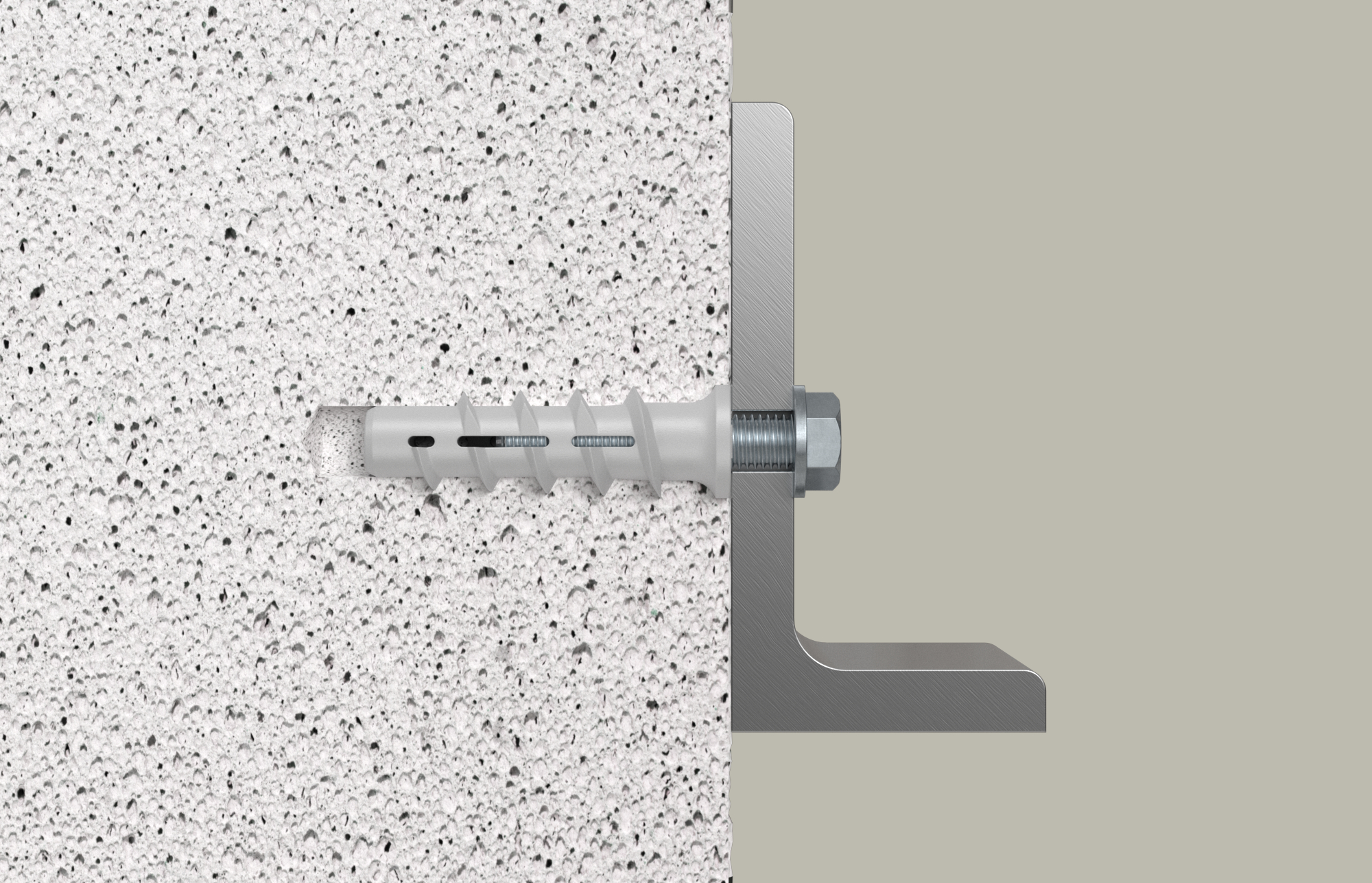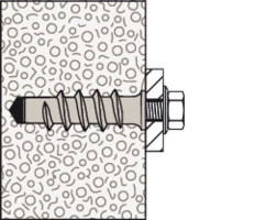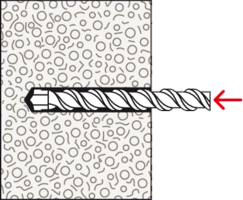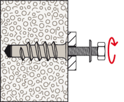 • Das spiralförmige Außengewinde schneidet sich formschlüssig in den weichen Porenbeton und sorgt für sicheren Halt.