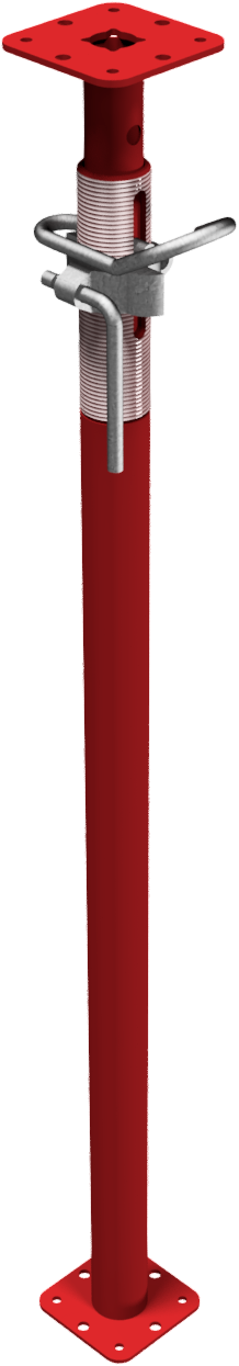 Euro Schalungsstütze der Klasse B/D, die bewährte Deckenstütze für den klassischen Hochbau, mit Handquetschsicherung und Ausfallsicherung. Unsere Euro-Schalungsstützen entsprechen den aktuellen Anforderungen des gültigen Regelwerks DIN EN 1065 für "freie" Baustützen. Durch einen an der Stütze aufgebrachten Aufkleber kann der Verstellbereich im Stützenschloss gut eingesehen werden, die zulässigen Tragkräfte sind abhängig von den Auszugslängen der Schalungsstütze, lackiert, mit Innengewinde, B/D25 Auszugslänge: 1,54m-2,50m