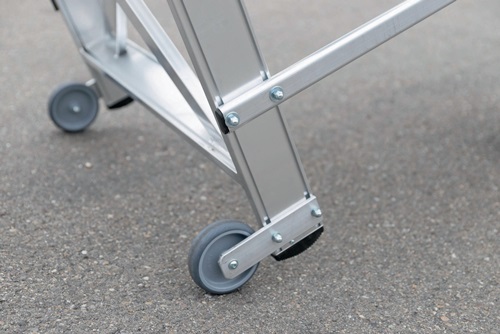 Das professionelle Alu-FahrGerüst ohne Fahrtraverse.+ TÜV-geprüft, Belastbarkeit 200 kg/m² (Gerüstgruppe 3) nach DIN EN 1004+ Das universelle Alu-Fahrgerüst für Arbeiten bis zu einer Arbeitshöhevon 14,30 m+ Die schnell lösbaren Ausleger erlauben ein leichtes Verfahren durchschmale Durchgänge+ Die Belagbühnen lassen sich problemlos (im 25 cm Abstand) zwischenden Diagonalen einhängen. Aufwendige Um- und Abbauten entfallen+ Ausleger sind im Lieferumfang enthalten+ Feldlängen: 2,00 m, 2,50 m und 3,00 m/ Gerüstfeldbreite: 0,75 m+ Arbeitshöhe 4,30 m – 14,30 m+ Höhenverstellbare Fahrrollen gewährleisten einen sicheren Einsatz aufunebenem Gelände (Verstellbereich 300 mm – 570 mm)