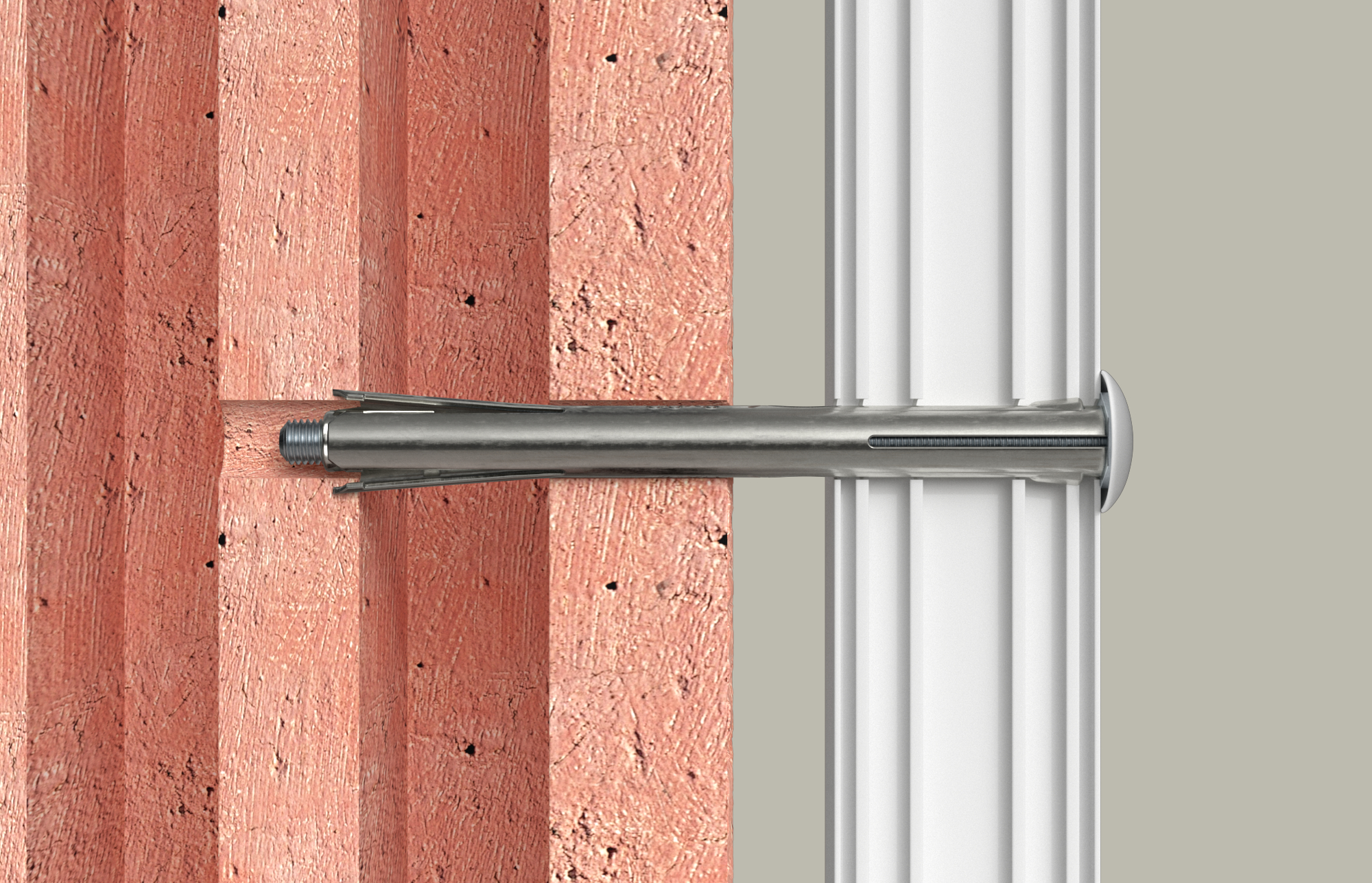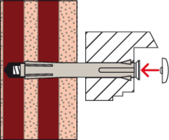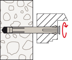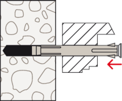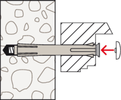• Beim Anziehen der Schraube wird der Konus in die Dübelhülse gezogen, spreizt diese auf und verkeilt sie im Bohrloch. Der Fensterrahmen wird dabei spannungsfrei befestigt.