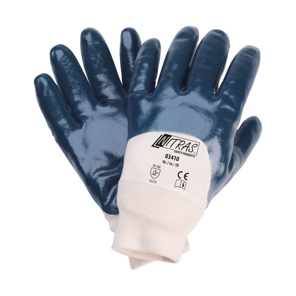 Der Nitril-Schutzhandschuh 3410/2309 in Blau ist ideal für Arbeiten mit scharfkantigen oder scheuernden Materialien wie Blech, Holz, Beton und Fliesen. Dank der 3/4-Beschichtung mit Nitril bietet er hervorragende Abriebfestigkeit und ist öl- und fettabweisend. Das Innenmaterial aus Baumwolle sorgt für hohen Tragekomfort, während der Strickbund für einen sicheren Sitz sorgt. Der Handschuh entspricht der Norm EN 388:2016 (4221X), was ihn besonders geeignet für mechanische Arbeiten macht. Perfekt für den professionellen Einsatz, bietet er Schutz und Langlebigkeit in einem.