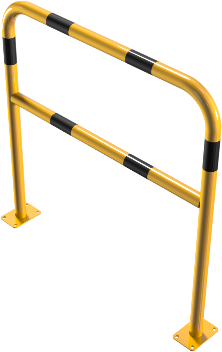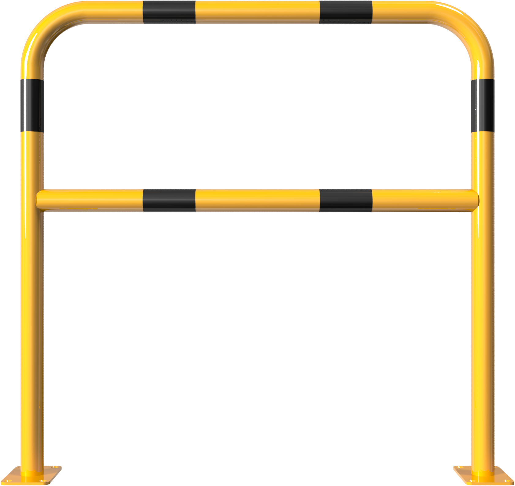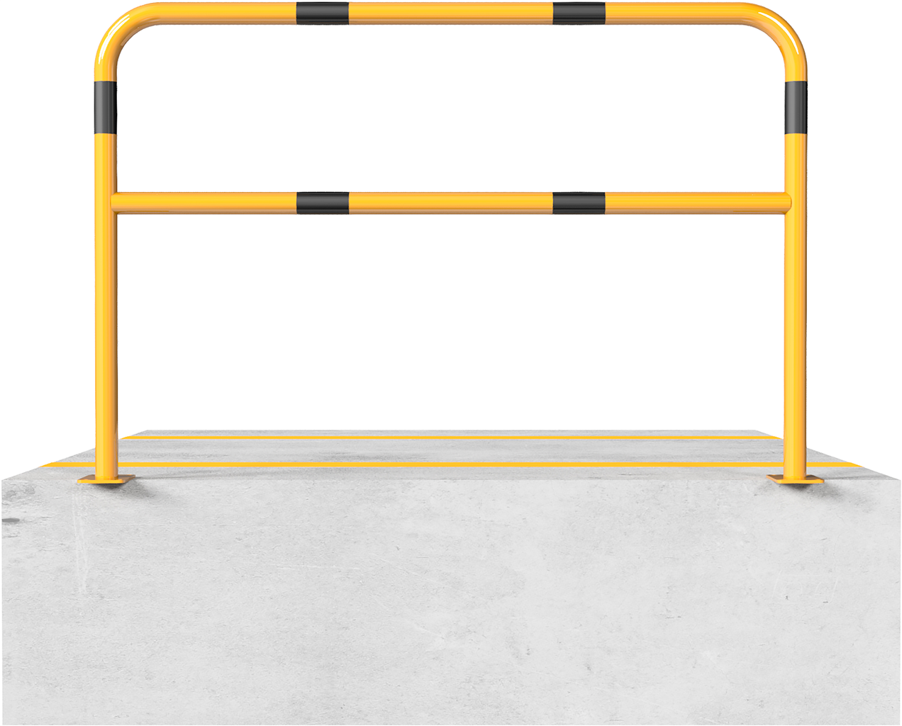 Bügel aus Stahlrohr Ø 48 mm, mit Querholm, zum Einbetonieren, Gesamtbreite: 1000 mm, Gesamthöhe: 1000 mm, feuerverzinkt und gelb beschichtet mit schwarzen Warnstreifen