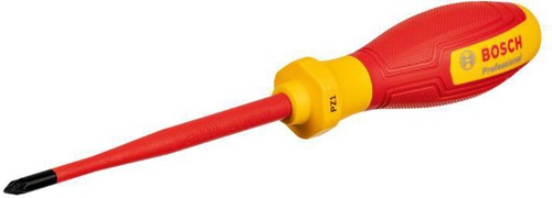 Schrauber VDE-Schraubendreher PZ1x100 · Professionelle Handwerker brauchen Werkzeuge · die leicht anzuwenden sind und allen gesetzlichen Vorgaben entsprechen. Mit dem Bosch Professional VDE-Schraubendreher PZ1x100 lassen sich Schrauben auch bei unerwartetem Kontakt mit stromführenden Teilen anziehen und lösen. Dieses normgerechte Werkzeug ist mit thermoplastischem Elastomer (TPE) isoliert. Es wurde bis zu 10.000 Volt geprüft und bis 1.000 Volt VDE-zertifiziert gemäß DIN EN/IEC 60900. Unser VDE-Schraubendreher ist präzise und langlebig. sein schmaler Schaft und seine robuste Spitze sorgen für Passgenauigkeit. Sein Softgrip und sein hoch ergonomisches Design sind handfreundlich und bequem bei der Arbeit. Die S2-Schraubendreherklinge verfügt über eine isolierende Schutzbeschichtung und der Handgriff ist mit TPE isoliert. Durch die Aufnahme von VDE-Handwerkzeugen in unser Bosch Professional-Sortiment sind nun alle erforderlichen Werkzeuge in zuverlässiger Bosch-Qualität erhältlich. Bosch Professional VDE-Schraubendreher sind rollsicher konstruiert · so dass sie am Arbeitsplatz nicht wegrollen. Darüber hinaus sind Profil und Größe an mehreren Positionen deutlich auf dem Griff sichtbar. Hängeschild Weitere technische Eigenschaften: · Dünne Klingenisolierung: ja · Ergonomischer Griff: ja · Gewicht: 0,056kg · Handgriffdurchmesser: 31mm · Klingendurchmesser: 4,5mm · Maximalspannung: 1000V · Softgriff: ja · VDE: ja · Wegrollsicheres Design: ja · Werkstoff: S2 · Werkzeugabmessungen (Breite): 31mm · Werkzeugabmessungen (Höhe): 31mm · Werkzeugfinder: ja