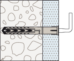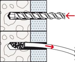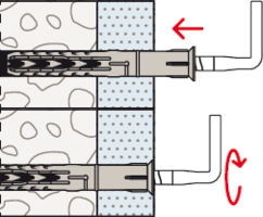 - Der SXR spreizt in Vollbaustoffen und verankert in Lochbaustoffen im Hohlraum.