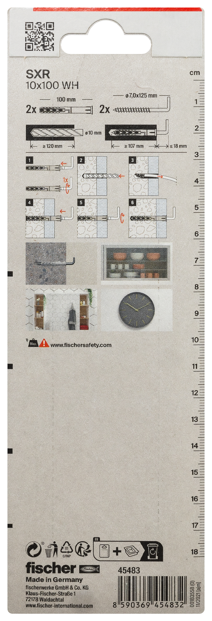 Der fischer Langschaftdübel SXR-WH ist ein Rahmendübel aus hochwertigem Nylon mit Winkelhaken. Dank der besonderen Dübelgeometrie kann der SXR in Vollbaustoffen und Lochbaustoffen eingesetzt werden. Aufgrund der geringen Verankerungstiefe von nur 50 mm lässt sich der Langschaftdübel vor allem bei Mehrfachbefestigungen von nicht tragenden Systemen besonders wirtschaftlich verarbeiten. Der fischer Langschaftdübel SXR-WH ist mit dem Winkelhaken besonders für die Befestigung von Hängeschränken, Bildern oder Garderoben zu empfehlen.