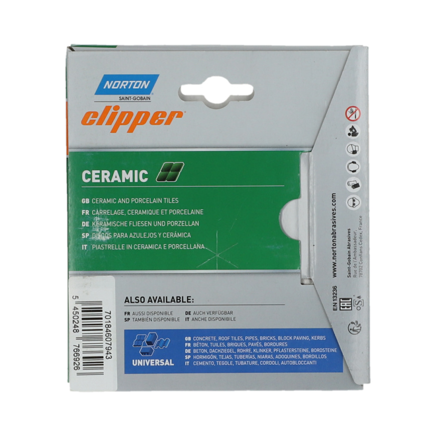 Diamantscheibe der höchsten Qualitätsstufe. Extra dünner, geschlossener Turboschneidrand mit 10 mm Segmenthöhe. Geeignet für den Trocken- und Nassschnitt. Anwendung: Härteste Materialien wie Keramik, Feinsteinzeug, glasierte Fliesen, dünne Natursteinplatten, Porzellan.