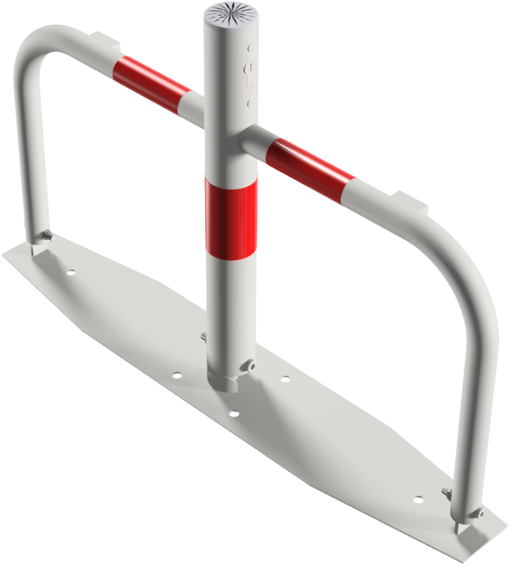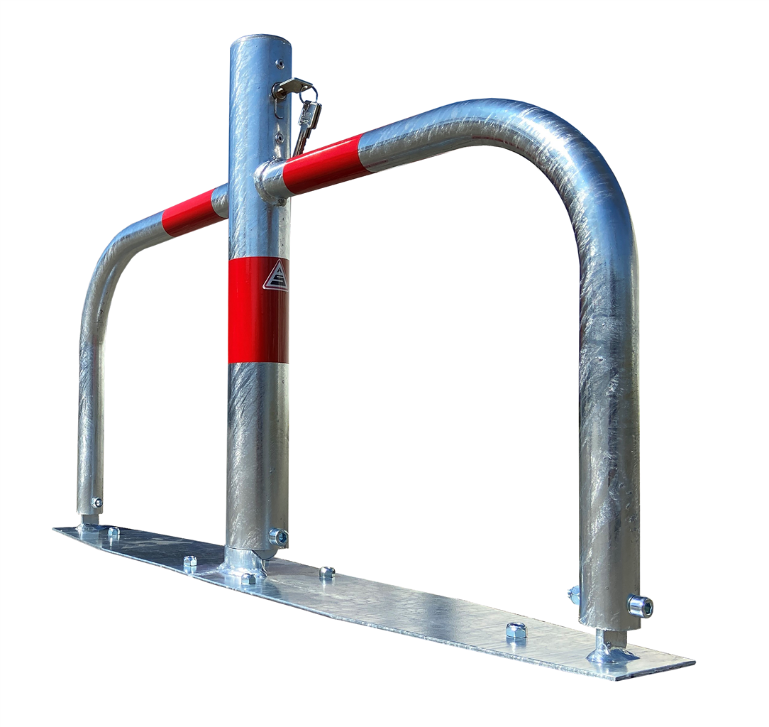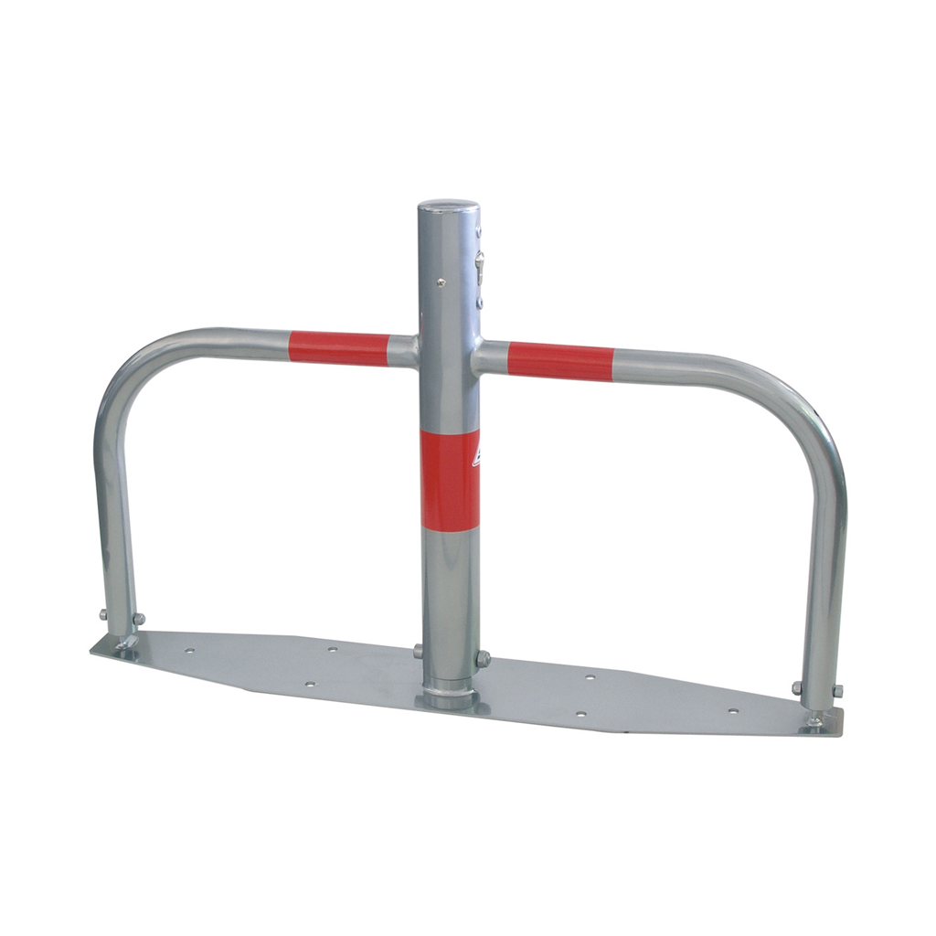 Parkplatzsperre Typ 40660, umlegbar, Ø 60mm, Überflur 500mm, feuerverzinkt, mit Rundrohrbügeln, Gesamtbreite 800mm, mit Profilzylinderschloß, zum Aufdübeln, inkl. Befestigungsmaterial