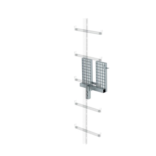 Sichert Steigleitern effektiv gegen unerwünschten Aufstieg durch Unbefugte Einfaches Einhängen in die Sprossen über rückseitige Profile Der Verschluss erfolgt über einen Sicherheitsriegel und das mitgelieferte Vorhängeschloss (inkl. zwei Schlüssel) Höhe: 1.190 mm Breite: 536 mm Abstand Einstiegsebene bis Unterkante Rückenschutz min. 2.700 – max. 3.000 mm nach DIN 18799-3