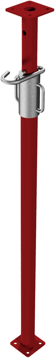 Euro Schalungsstütze der Klasse B/D, die bewährte Deckenstütze für den klassischen Hochbau, mit Handquetschsicherung und Ausfallsicherung. Unsere Euro-Schalungsstützen entsprechen den aktuellen Anforderungen des gültigen Regelwerks DIN EN 1065 für "freie" Baustützen. Durch einen an der Stütze aufgebrachten Aufkleber kann der Verstellbereich im Stützenschloss gut eingesehen werden, die zulässigen Tragkräfte sind abhängig von den Auszugslängen der Schalungsstütze, lackiert, mit Innengewinde, B/D25 Auszugslänge: 1,54m-2,50m