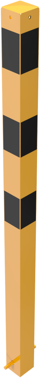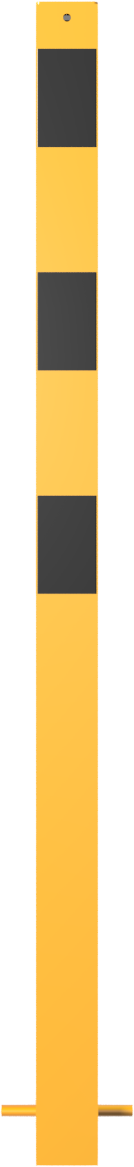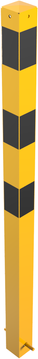 Absperrpfosten, Vierkantrohr 70 x 70 mm, mit aufgeschweißter Stahlkappe, 900 mm Überflur, feuerverzinkt und gelb beschichtet mit drei schwarzen Streifen, ortsfest, zum einbetonieren, mit Erdanker, ohne Öse