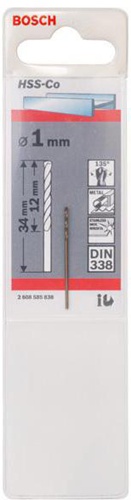 Bosch Metallbohrer HSS-Co DIN338 Arbeits-L.12mm D.1mm L.34mm