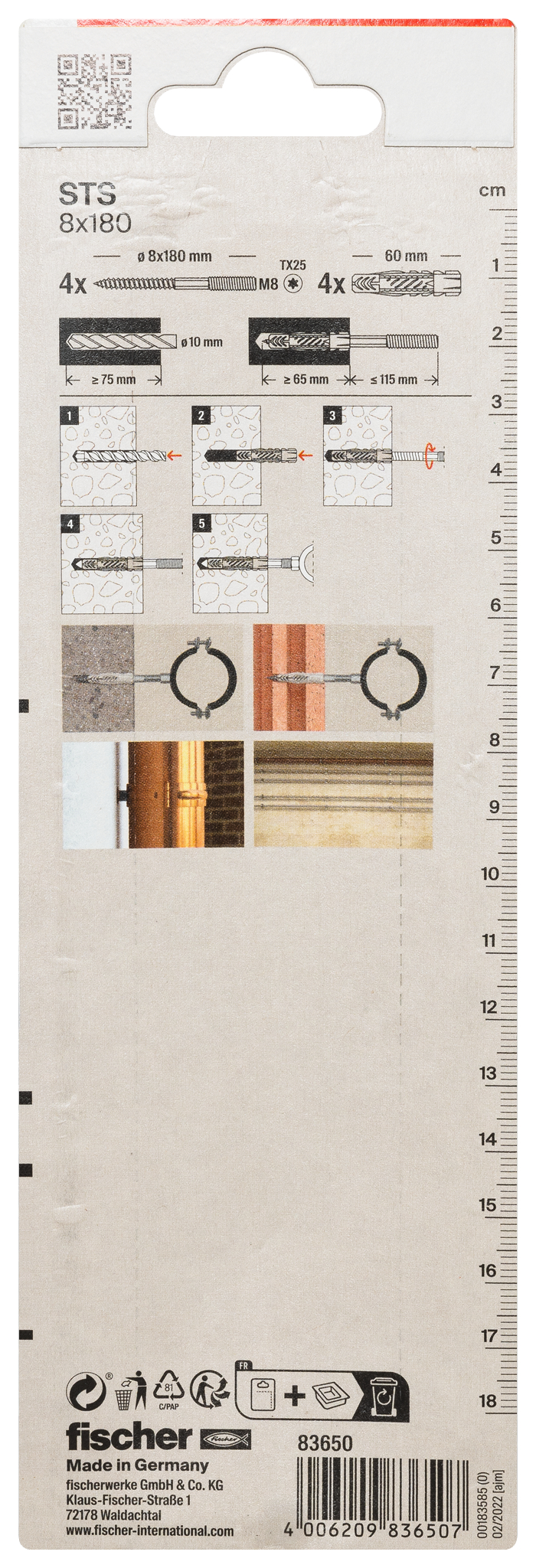 Eigenschaften "fischer Stockschraube STS 8 x 180 + UX"