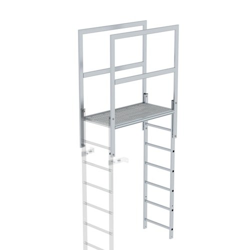 + Lieferung in vormontierten BaugruppenInfo: Nach DIN EN ISO 14122-3 (Zugänge zu maschinellen Anlagen) ist ab 0,50 m Plattformhöhe ein Geländer erforderlich.