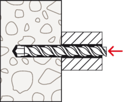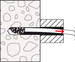 • Mit dem Einschrauben der Schraube spreizt der SXS in vier Richtungen auf und verankert dadurch im Baustoff.