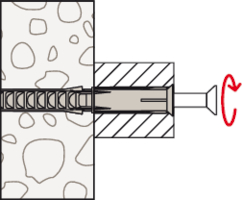 Der fischer Langschaftdübel SXRL-T ist mit der fischer Senkkopfschraube mit TX-Antrieb für Mehrfachbefestigungen von nicht tragenden Systemen in Mauerwerk, Beton und Porenbeton zugelassen. In Lochsteinmauerwerk leiten die zwei Spreizzonen des Dübels gleichmäßig Kraft ein, in Porenbeton und Vollbaustoff vereinen sich diese zu einem langen Spreizelement. Mit der Sicherheitsschraube aus galvanisch verzinktem Stahl ist der Langschaftdübel für Befestigungen im Innenbereich wie Fenstern, Garderoben, Hängeschränken oder TV-Konsolen geeignet.ETA-Bewertung mit hervorragenden Lastwerten: sichere Mehrfachbefestigungen von nicht tragenden Systemen in Beton und Mauerwerk.Das lange Spreizelement macht den SXRL vielseitig in der Anwendung.Lasten werden durch Dübelgeometrie gleichmäßig in Baustoff eingeleitet. Dadurch werden bei dünnwandigen Baustoffen Stege nicht zerstört.Leichte Montage: Rippen verhindern beim Tiefersetzen das Mitdrehen des Dübels.G9Das lange Spreizelement mit multiplen Verankerungstiefe 50, 70 und 90 mm für SXRL 8 und SXRL 10 und 70 und 90 mm für SXRL 14 macht den SXRL zu einem vielseitig einsetzbaren Produkt.Durch die besondere Geometrie des Dübels verteilen sich die Haltekräfte gleichmäßig im Bohrloch.Die Zulassung zur Einzelpunktbefestigung in gerissenem Beton macht den SXRL 10 bei Anwendungen, wie z.B. der Befestigung von Vordächern und Außengeländern, zum Spezialisten in Beton und zu einer wirtschaftlichen Alternative gegenüber Stahlankern.Beim Tiefersetzen verhindern die längeren Rippen ein Mitdrehen des Dübels bei der Montage.SXRL 10 und 14 sind zusätzlich für Anwendungen, die auf Druck beansprucht werden zugelassen und darf für Fassadenkonstruktionen verwendet werden, die ohne Wandhalter auf Abstand montiert werden.Der SXRL mit Nutzlängen bis 290 mm bietet für jede Anwendung den richtigen Dübel.Der SXRL ist geeignet für die Durchsteckmontage.In Lochsteinmauerwerk wird durch die zwei Spreizzonen eine untergrundschonende Krafteinleitung gewährleistet. Die porösen Steinstege werden durch die zweite Spreizzone nicht zerstört und können dadurch zur Kraftweiterleitung herangezogen werden.Die zwei Spreizzonen vereinen sich im Porenbeton und Vollbaustoffen zu einem langen Spreizelement und garantieren eine gleichmäßige, flächige Lastverteilung in den Untergrund.Empfehlenswert zur Befestigung von Holzkonstruktionen.Bei Metallkonstruktionen sind Dübel mit breitem Hülsenrand und Sechskantschrauben mit angeformter Unterlegscheibe zu empfehlen.geeignet fürZugelassen für:HochlochziegelPorenbetonHohlblock aus LeichtbetonKalksandlochsteinWärmedämmblöckeVollblock aus Leicht- und NormalbetonVollziegelKalksandvollsteinBeton ≧ C12/15Naturstein mit dichtem GefügeVollgips-PlattenAnwendungBewegungsmelderFensterFührungsschienenGarderobenHandläufeHeizkörperJalousien / KlapplädenKabelkanäleKabelrinnenKüchenhängeschränkeLeuchtenMetallhalterungenMetallwinkelTore und TürenTV-KonsolenWandbekleidungenWandregale