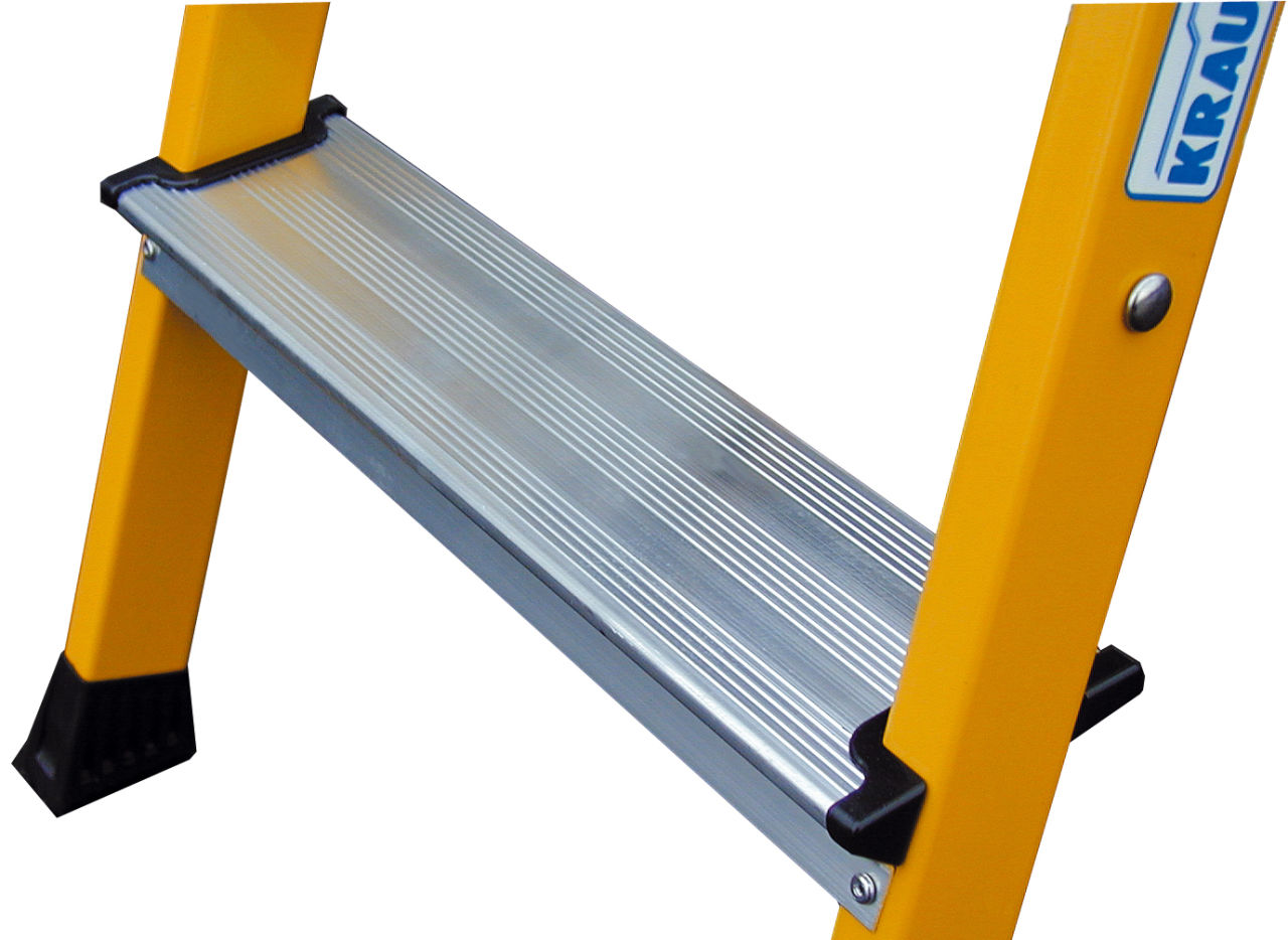 stabile, verschweißte Rohrkonstruktion, Stufen 220 mm tief, aus Aluminium-Lochblech, Sicherheitsstufen mit zertifizierter Rutschhemmung R13, Holmenden mit rutschfesten Kunststoffschuhen, max. Gesamtbelastung 150 kg