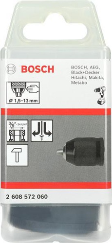 Eigenschaften "Bosch Schnellspannbohrfutter Spann-W.2-13mm Aufnahme 3/8- 24Zoll f.Rechts-Linkslauf"