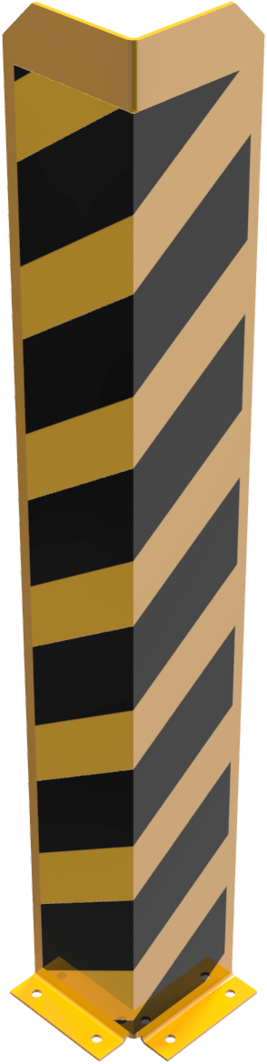Anfahrschutzwinkel gemäß BGR234, für den individuellen Einsatz (Lagereinrichtungen, Regalstützen, etc.), Stahlblech 5 mm stark, gelb pulverbeschichtet mit schwarzen Streifen (lose beigelegt), zum Aufdübeln, Schenkellänge 160 mm, Höhe: 1200 mm