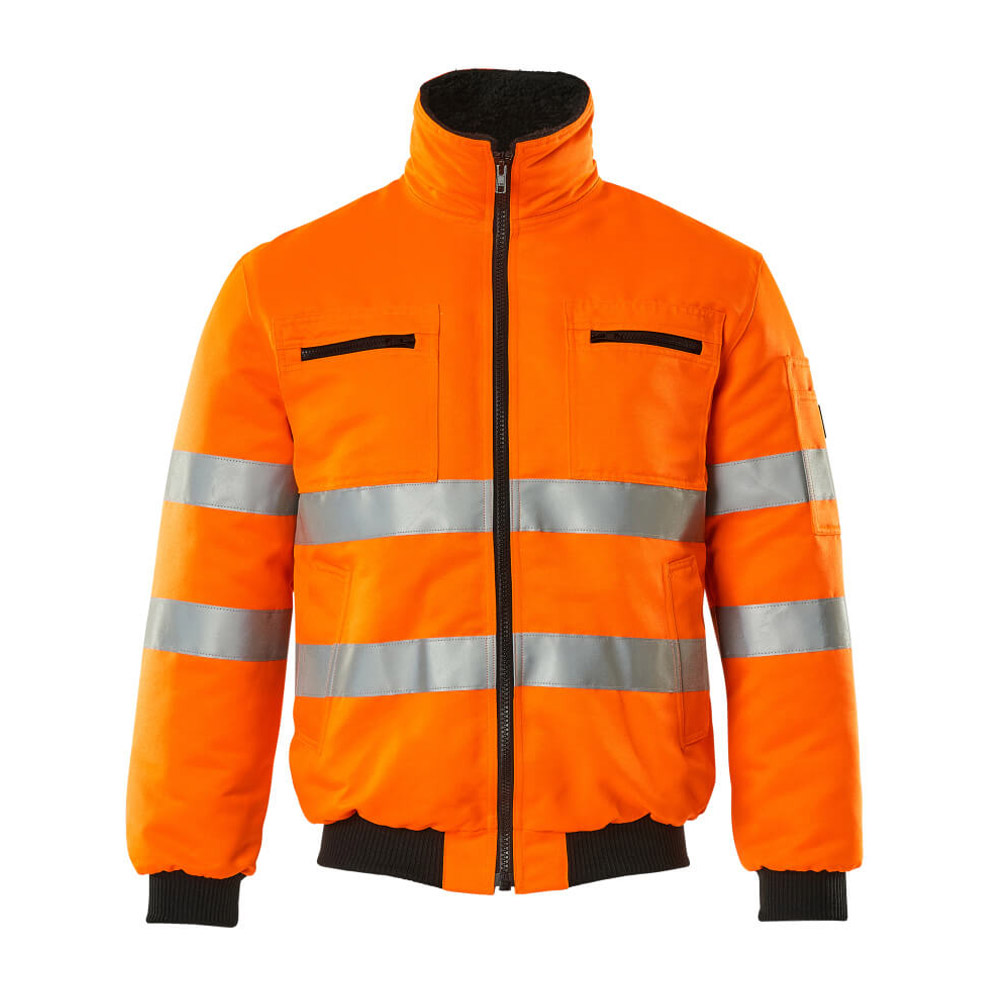 Die MASCOT Warnpilotjacke ALASKA 00516 in warnorange bietet exzellenten Schutz und Sichtbarkeit. Diese wasserabweisende Jacke ist mit fluoreszierenden Reflexstreifen ausgestattet, die für hohe Sichtbarkeit sorgen. Sie verfügt über mehrere praktische Taschen, darunter zwei Brusttaschen, zwei Vordertaschen und zwei Innentaschen, eine davon mit Reißverschluss. Die Jacke ist mit Rippenbündchen an der Unterkante und den Handgelenken ausgestattet und hat einen durchgehenden Reißverschluss sowie einen D-Ring für zusätzliche Funktionalität.