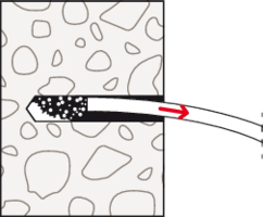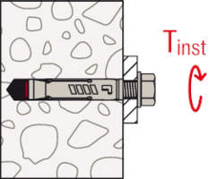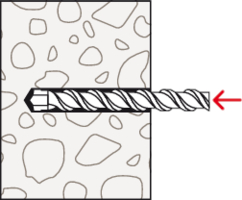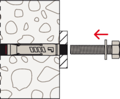 • Beim Aufbringen des Drehmoments wird der Konus in die Spreizhülse gezogen und verspannt diese gegen die Bohrlochwand.
