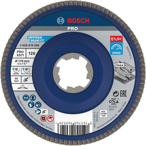 Eigenschaften "Bosch Fächerschleifscheibe PRO X571 D.115mm Körnung 120 gerade X-LOCK "