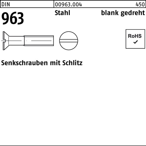 Eigenschaften "Senkschraube DIN 963 Schlitz M1,4x 8 Stahl gedreht 100 Stück"
