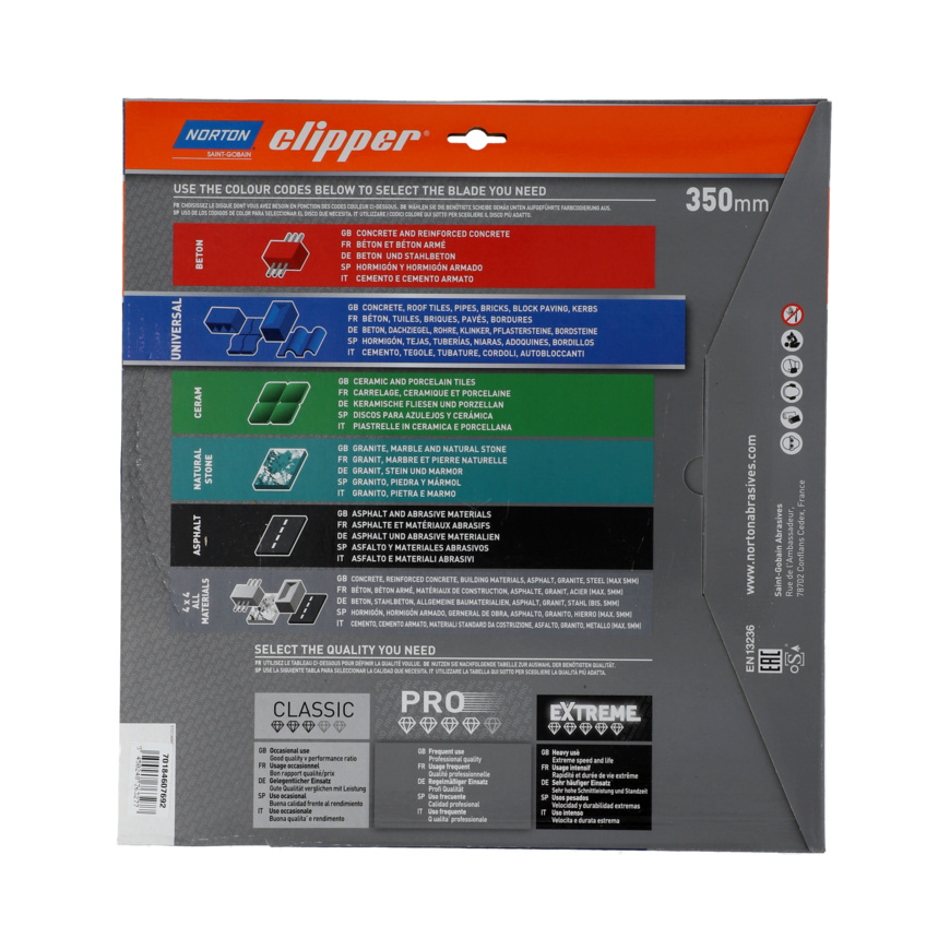 • Ideal für Beton und alle allgemeinen Baumaterialien, erreicht einen schnellen, effizienten Schnitt mit reduziertem Lärmpegel für geräuschempfi ndliche Arbeitsumgebungen.