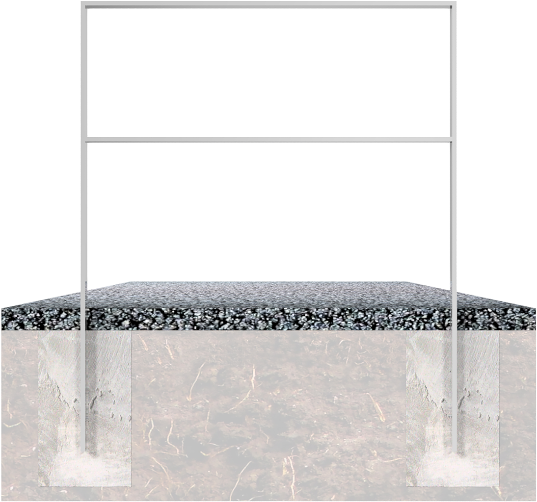 Anlehnbügel aus Flachstahl, zum Einbetonieren, feuerverzinkt und optional pulverbeschichtet in DB 703, Gesamthöhe ca. 1200 mm, Flachstahl 50 x 12 mm, mit Querholm, Gesamtbreite: 750 mm, feuerverzinkt und beschichtet DB 703