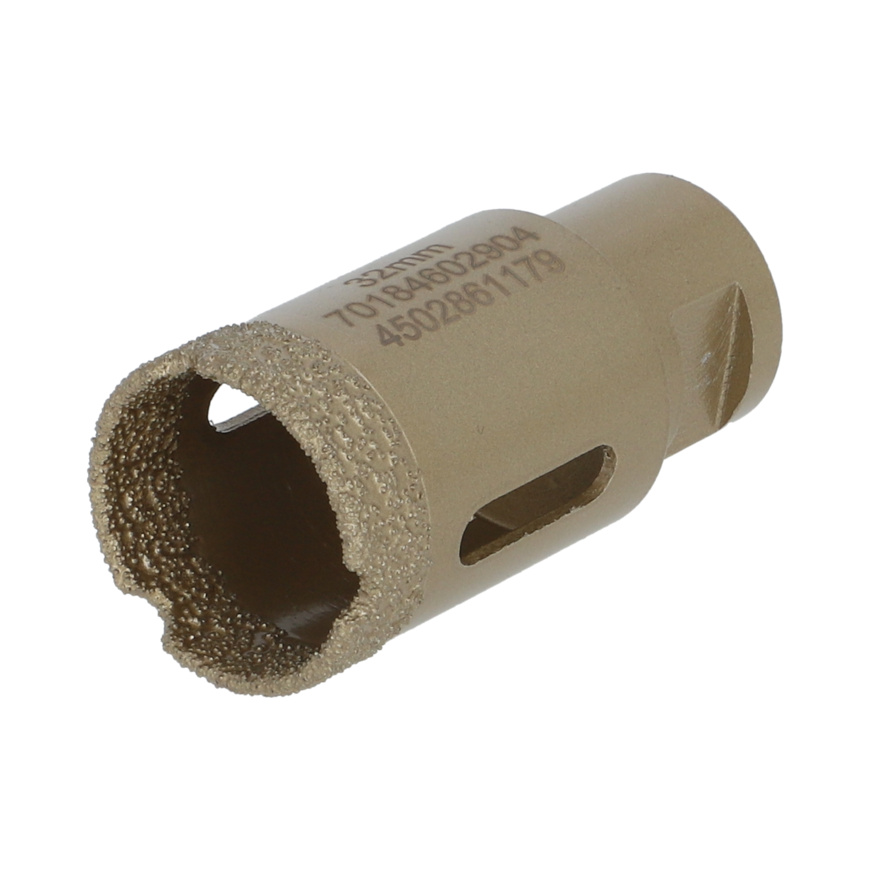 Langlebiges Trockenbohren in Mauerwerk! Hochwertiges Diamantkorn und Matrix für Langlebigkeit und Präzision Das Bohren in die härtesten Baumaterialien ist anstrengend · aber mit dem PRO Core Cutter dry bekommst du die Arbeit auf jeden Fall erledigt. Sie ist langlebig und scharf genug · um alle Materialien zu durchdringen. Die Qualität und Haltbarkeit des PRO Core Cutter dry zeigt sich in seinem hochwertigen Diamantbesatz in einer Premium-Metallmatrix - für hohe Leistung und Langlebigkeit. Weitere technische Eigenschaften: · Durchmesser (D) (1): 25/32Zoll