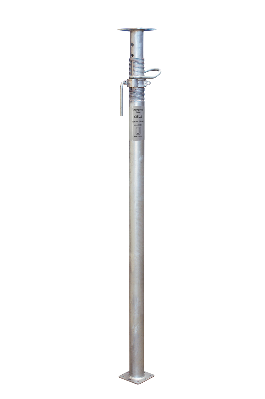 Euro Schalungsstütze der Klasse C/E die bewährte Deckenstütze für den klassischen Hochbau, eine Handquetschsicherung sowie eine Ausfallsicherung sorgen für das sichere Arbeiten an der Baustelle. Unsere Euro-Schalungsstützen entsprechen den aktuellen Anforderungen des gültigen Regelwerks DIN EN 1065 für "freie" Baustützen. Die zulässigen Tragkräfte sind abhängig von den Auszugslängen der Schalungsstütze, verzinkt, mit Außengewinde einfaches und schnelles Handling durch 3-gängiges Gewinde, C/E25 Auszugslänge: 1,45 m - 2,50 m